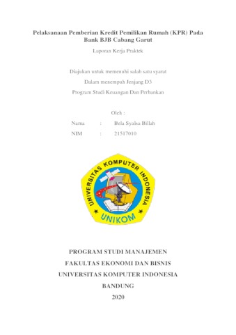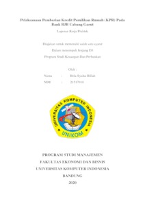 Billah, Bela Syalsa (2020) Pelaksanaan Pemberian Kredit Pemilikan Rumah (KPR) Pada Bank BJB Cabang Garut. Diploma thesis, Universitas Komputer Indonesia.