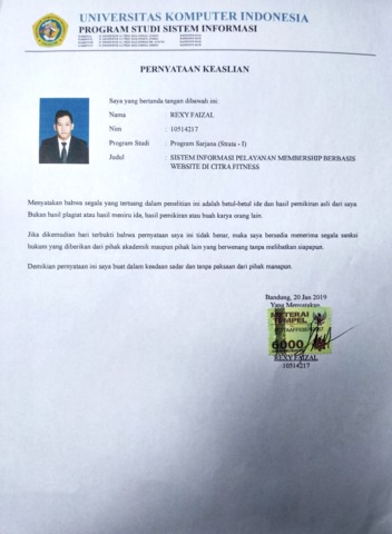 Faizal, Rexy (2019) Sistem Informasi Pelayanan Membership Berbasis Website Di CItra Fitness. Other thesis, Universitas Komputer Indonesia.