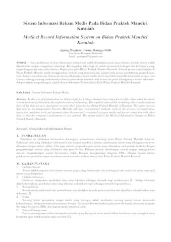 Utama, Agung Mugiana (2019) Sistem Informasi Rekam Medis Pada Bidan Praktek Mandiri Kusniah. Other thesis, Universitas Komputer Indonesia.