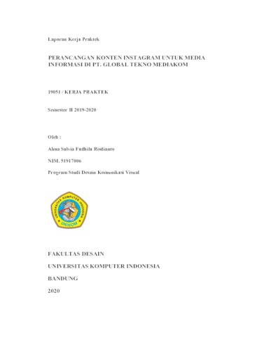 Risdianto, Alma Salvia Fadhila (2020) Perancangan Konten Instagram Untuk Media Informasi Di Pt. Global Tekno Mediakom. Other thesis, Universitas Komputer Indonesia.