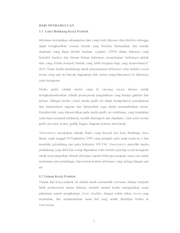 Instagram adalah salah satu media sosial yang saat ini banyak digunakan oleh orang-orang di berbagai kalangan, mulai dari anak-anak, remaja, dewasa, hingga orang tua. Instagram ini merupakan sebuah aplikasi untuk berbagi foto dan video yang berisi konten-konten dan berbagai aktivitas banyak orang sesuai dengan penggunanya. Saat ini konten instagram juga bisa digunakan sebagai media informasi dan komunikasi. Konten instagram ini ditujukan untuk memberikan sebuah informasi kepada para pengguna instagram yang salah satunya untuk para pengikut instagram Ninetyniners. Salah satu perusahaan di bidang broadcasting saat ini ialah radio Ninetyniners yang berdiri pada tahun 2000 dibawah naungan PT. Global Tekno Mediakom. Ninetyniners menggunakan sebuah media sosial instagram sebagai media pendukung untuk menginformasikan konten-konten yang dibagikannya, salah satunya memberikan sebuah informasi yang sedang marak di tahun 2020. Konten ini dibuat melalui penggunaan media grafis seperti infografis agar penyampaiannya mudah dimengerti dan pembaca langsung mengetahui inti pembahasan dari konten tersebut.