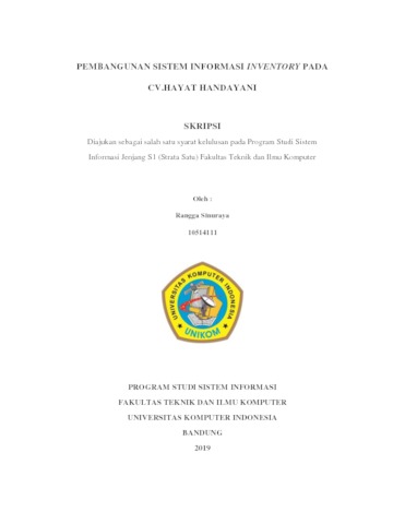 Sinuraya, Rangga (2019) Pembangunan Sistem Informasi Inventory Pada CV. Hayat Handayani. Other thesis, Universitas Komputer Indonesia.