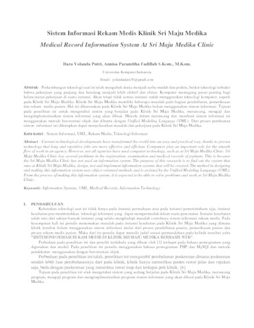 Putri, Dara Yolanda (2019) Sistem Informasi Rekam Medis Di Klinik Sri Maju Medika Berbasis Web. Other thesis, Universitas Komputer Indonesia.