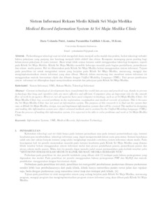 | Uncontrolled Keywords: | Sistem Informasi, UML, Rekam Medis, Teknologi Informasi |