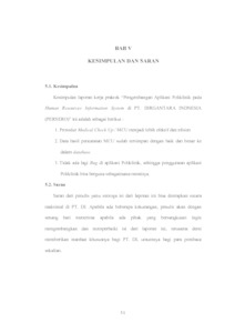 | Uncontrolled Keywords: | aplikasi, poliklinik, medical check up, sistem informasi |