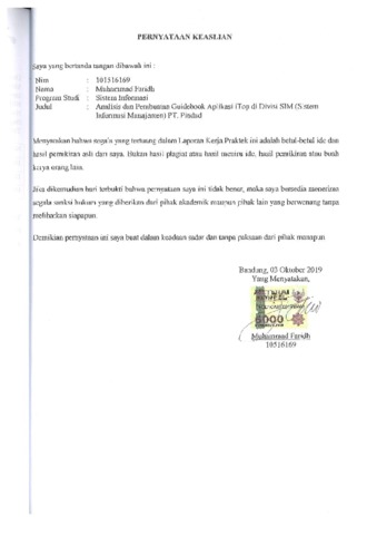 UNIKOM_Muhammad Faridh_KP_Lampiran_Surat_Keaslian.pdf - Published Version