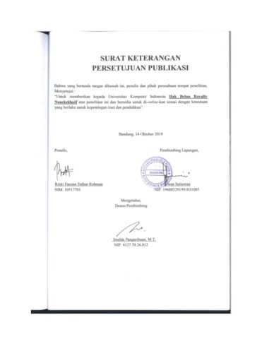 UNIKOM_Rizki Fauzan Fathur Rohman_KP_Lampiran_Persetujuan_Publikasi_KP.pdf - Published Version