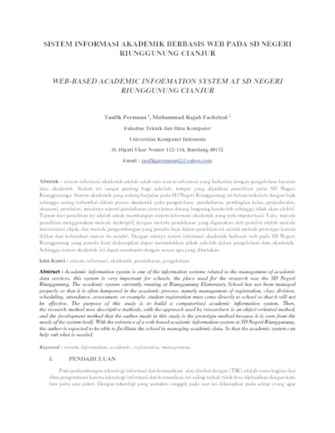 Permana, Taufik (2019) Sistem Informasi Akademik Berbasis Web Pada Sd Negeri Riunggunung Cianjur. Other thesis, Universitas Komputer Indonesia.