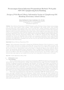 Sistem Informasi Perpustakaan di SDN 036 Ujungberung Kota Bandung berfungsi sebagai sarana penunjang siswa dan guru dalam kegiatan belajar mengajar. Sistem perpustakaan yang sedang berjalan masih memiliki kekurangan-kekurangan seperti pendataan buku, mencari data-data buku, transaksi peminjaman pengembalian dan laporan data perpustakaan masih dilakukan dengan proses manual. Tujuan dari penelitian ini adalah untuk mengetahui bagaimana sistem dan prosedur perpustakaan yang sedang berjalan, untuk mengetahui perancangan sistem informasi berbasis web di perpustakaan, untuk mengetahui pengujian sistem informasi berbasis web di perpustakaan, dan untuk mengetahui implementasi sistem informasi yang sedang berjalan di perpustakaan SDN036 Ujungberung Kota Bandung. Perancangan Sistem Informasi Perpustakaan Berbasis Web di SDN 036 Ujungberung Kota Bandung yang terkomputerisasi berbasis web diharapkan dapat membantu para pengunjung perpustakaan tersebut seperti kegiatan peminjaman dan pengembalian buku dan pencarian buku, serta untuk petugas perpustakaan dalam mengecek status peminjaman dan pengembalian, memasukkan data stok buku baru dan yang tersedia, dan pembuatan laporan kegiatan perpustakaan untuk setiap bulannya.