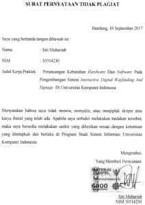 UNIKOM_Siti Muhariah_KP_Lampiran Surat Pernyataan Tidak Plagiat (Keaslian).pdf - Published Version