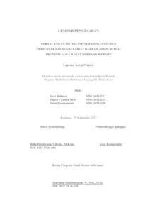 Rahayu, Devi and Dewi, Zahra Cynthia and Purnamasari, Sinta (2017) Perancangan Sistem Informasi Manajemen Perpustakaan Sekretariat Daerah (Simpusetda) Provinsi Jawa Barat Berbasis Website. Other thesis, Universitas Komputer Indonesia.