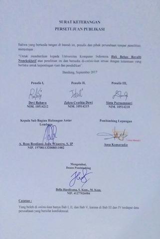 UNIKOM_Zahra Cynthia Dewi_KP_Lampiran Surat Pernyataan Persetujuan Publikasi.jpg - Published Version