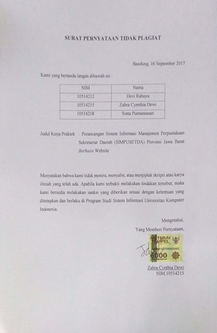 UNIKOM_Zahra Cynthia Dewi_KP_Lampiran Surat Pernyataan Tidak Plagiat.jpg - Published Version