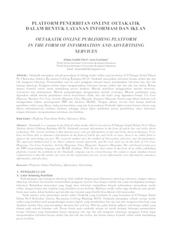 | Uncontrolled Keywords: | Platform, Penerbitan Online, Informasi, Iklan. |