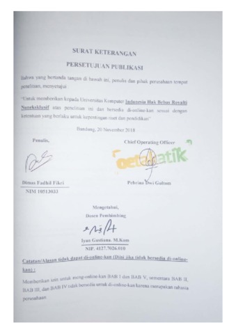 UNIKOM_Dimas Fadhil Fikri_Surat Keterangan Persetujuan Publikasi.pdf - Published Version