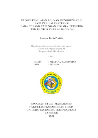 Rahmadina, Meliana (2022) Proses Penilaian Agunan Menggunakan Jasa Penilai Eksternal Pada Pt Bank Tabungan Negara (Persero) Tbk Kantor Cabang Bandung. Other thesis, Universitas Komputer Indonesia.