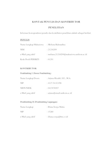 21218209_MELIANA RAHMADINA_LEMBAR KONTAK PENULIS DAN KONTRIBUTOR PENELITIAN.pdf - Published Version