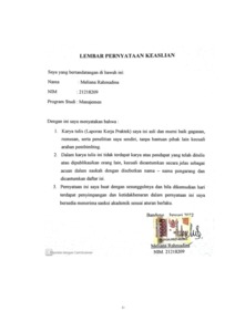 21218209_MELIANA RAHMADINA_LEMBAR PERNYATAAN KEASLIAN.pdf - Published Version