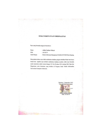 20.UNIKOM_AFDHAL SADDAM HIDAYAT_SURAT PERNYATAAN ORISINALITAS.pdf - Published Version