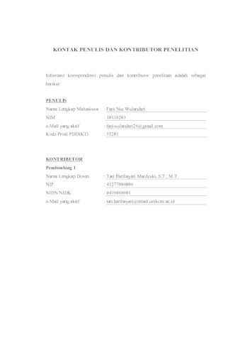 UNIKOM_FANI NUR WULANDARI_LEMBAR KONTAK PENULIS _ KONTRIBUTOR.pdf - Published Version