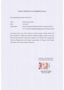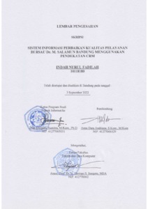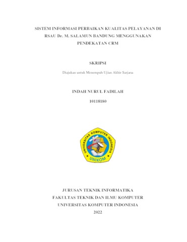 Fadilah, Indah Nurul (2022) Sistem Informasi Perbaikan Kualitas Pelayanan Di Rsau Dr. M. Salamun Bandung Menggunakan Pendekatan Crm. Other thesis, Universitas Komputer Indonesia.