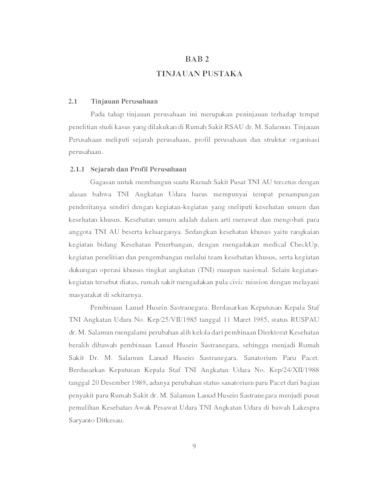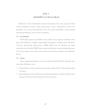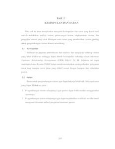 RSAU Dr. M. Salamun Dinas Kesehatan TNI AU merupakan Rumah Sakit Militer tingkat II. Keberadaan RSAU Dr. M. Salamun diharapkan mampu melayani pemeriksaan kesehatan bagi anggota TNI, PNS beserta masyarakat umum. Terdapat dua kelompok pelayanan kesehatan yaitu rawat inap dan rawat jalan. Survei kepuasan pasien di RSAU Dr. M. Salamun belum dapat mengukur kualitas pelayanan yang ada di antara persepsi dan ekspektasi pasien terhadap pelayanan, sehingga dapat menyebabkan pasien mengalami ketidakpuasan serta mengalami kekecewaan terhadap rumah sakit. Dari permasalahan tersebut. Tujuan dari penelitian ini adalah membangun sistem informasi perbaikan kualitas pelayanan berbasis web dan menerapkan strategi Customer Relationship Management (CRM). Analisis kebutuhan fungsional yang di rancang pada sistem ini diantaranya ERD, Diagram Konteks, DFD, Spesifikasi Proses, dan kamus Data. Setelah melalui tahap pengujian, sistem infomasi ini dapat mengatasi masalah yang terjadi. Ketua komite PMKP dapat mengetahui seberapa besar selisih antara ekspektasi pasien terhadap pelayanan yang akan diterima dengan persepsi pasien terhadap pelayanan yang telah diterima, sehingga dapat mempertahankan kualitas pelayanan kepuasan pasien, serta membantu ketua komite PMKP dalam merekomendasikan saran perbaikan pelayanan rumah sakit yang efektif sesuai dengan harapan dan kebutuhan pasien.