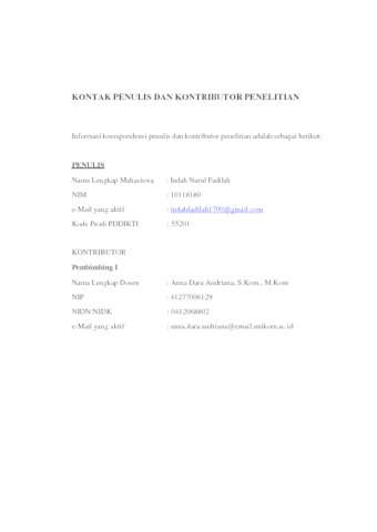 UNIKOM_INDAH NURUL FADILAH_LEMBAR KONTAK PENULIS _ KONTRIBUTOR.pdf - Published Version