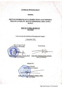 Rusdian, Moch Yudha (2022) Sistem Informasi Manajemen Penilaian Kinerja Pegawai Pada Pt. Bayer Indonesia Area Jawa Barat. Other thesis, Universitas Komputer Indonesia.
