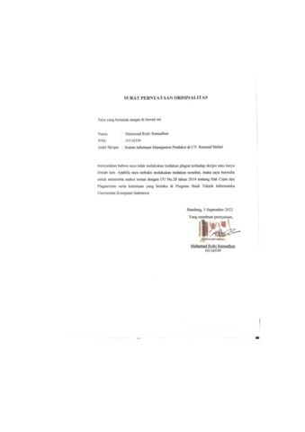 UNIKOM_MUHAMAD RIZKI RAMADHAN_SURAT PERNYATAAN ORISINALITAS.pdf - Published Version