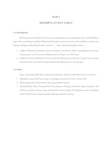 Panti sosial rehabilitasi lanjut usia ciparay kabupaten bandung merupakan lembaga organisasi kesejahteraan yang bergerak di bidang sosial atau pelayanan untuk para lansia. Panti sosial ini berfungsi sebagai rehabilitasi sosial pada lanjut usia, panti sosial pada saat ini masih sulitnya penyebaran informasi mengenai panti sosial yang membutuhkan bantuan kebutuhan lansia dikarenakan pendonasian bantuan untuk kebutuhan lansia di panti sosial masih berupa pendonasi datang ke tempat panti sosial. oleh karena itu kondisi yang sekarang bantuan di salurkan ke panti belum sepenuhnya sesuai dengan kebutuhan lansia saat ini. terdapat juga masalah di panti sosial yang menyediakan penjemputan bantuan. Tetapi ini menjadikan masalah ketika kendaraan yang digunakan petugas untuk menjemput bantuan tidak sesuai dengan barang yang akan diambil dari donatur. Karena didalam surat tugas yang diberikan panti ke petugas penjemputan, tidak memberikan informasi barang yang akan disumbangkan oleh donatur, sehingga jika kendaraan tidak dapat mengangkut bantuan, petugas harus kembali ke panti sosial untuk mengganti kendaraan. Penelitian ini menggunakan metode deksriptif dengan menerapkan dua metode dalam pelaksanaanya yaitu metode pengumpulan data dengan melakukan wawancara, studi lokasi pada panti sosial ciparay kabupaten bandung, metode pembangunan perangkat lunak menggunakan waterfall. Maka dari itu dalam penelitian ini akan dibuat sebuah aplikasi yang dapat membantu panti sosial dan pendonasi dalam bantuan kebutuhan lansia, serta membantu proses pengambilan bantuan yang akan diambil oleh petugas. Dengan adanya aplikasi bantuan kebutuhan lansia ini diharapkan panti sosial dapat melakukan penyebaran informasi mengenai kebutuhan lansia, serta bagi pihak petugas dapat memberikan proses pengambilan bantuan secara lebih efesien.