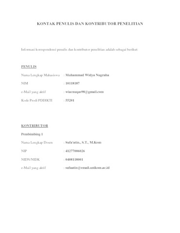 UNIKOM_MUHAMMAD WIDYA NUGRAHA_LEMBAR KONTAK PENULIS _ KONTRIBUTOR.pdf - Published Version