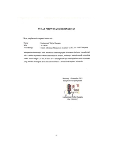 UNIKOM_MUHAMMAD WIDYA NUGRAHA_SURAT PERNYATAAN ORISINILITAS.pdf - Published Version