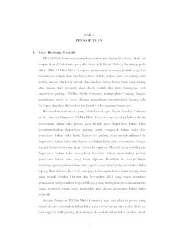 PD.Jitu Multi Company merupakan perusahaan dagang di bidang pakan dan umpan ikan di Sukabumi yang didirikan oleh Bapak Dadang Suparman pada tahun 1989. PD.Jitu Multi Company mempunyai beberapa produk unggulan diantaranya umpan ikan jitu kinoy telur bebek, umpan ikan jitu tepung ebie kering, umpan jitu kinoy kristal, dan lain-lain. Masalah yang timbul diperusahaan yaitu Supervisor bahan baku mengalami kesulitan dalam menentukan jumlah persediaan bahan baku yang harus dipesan dan Supervisor gudang seringkali kesulitan untuk mengetahui persediaan bahan baku.Berdasarkan permasalah tersebut penelitian ini bertujuan untuk membuat sistem informasi manajemen inventory yang dimana dalam pembangunan sistem akan menggunakan metode Single Moving Average (SMA) untuk meramalkan jumlah pemesanan bahan baku yang harus dipesan. Lalu sistem juga menggunakan metode FIFO yaitu First in First Out yang digunakan untuk menentukan bahan baku mana yang harus terlebih dulu dipakai.Penelitian ini akan menghasilkan sebuah sistem informasi manajemen inventory yang dibangun untuk membantu Supervisor Gudang dan Supervisor Bahan baku dalam melaksanakan tugasnya.