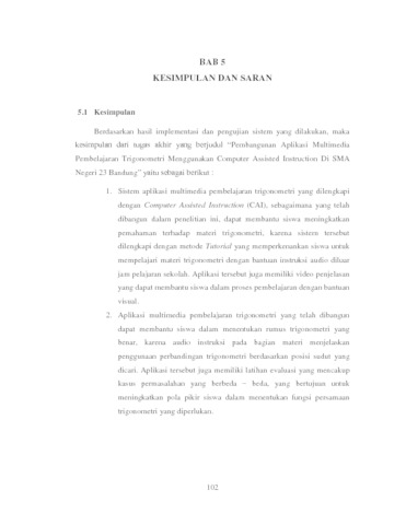 | Uncontrolled Keywords: | Trigonometri, Pembelajaran Interaktif, Action Script, CAI. |