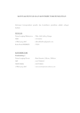 18. UNIKOM_NIKO ALDI ARIBOY SINAGA_LEMBAR KONTAK PENULIS _ KONTRIBUTOR.pdf - Published Version