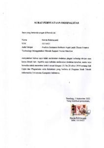 | Uncontrolled Keywords: | Analisis Sentimen Berbasis Aspek,, Support Vector Machine, Finance Technology. |