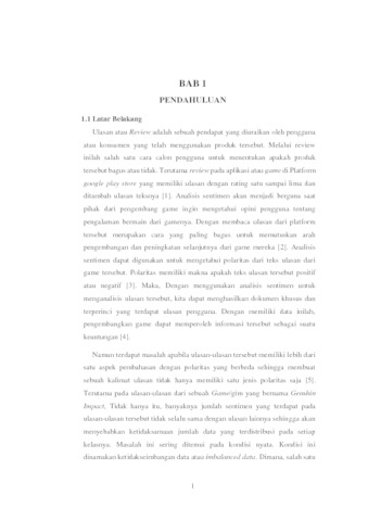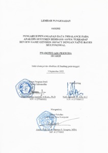 Analisis sentimen dapat digunakan untuk mengetahui polaritas dari teks ulasan tersebut. Namun terdapat masalah apabila ulasan-ulasan tersebut memiliki lebih dari satu aspek pembahasan dengan polaritas yang berbeda menjadikan ulasan itu memiliki lebih dari satu polaritas seperti ulasan-ulasan pada game Genshin Impact. Tidak hanya itu, jumlah sentimen yang terdapat pada ulasan tidak selalu sama dengan ulasan lainnya sehingga akan menyebabkan data imbalance. Maka, penelitian ini akan melakukan penanganan data imbalance dengan Random Undersampling dan Random Oversampling pada analisis sentimen berbasis aspek terhadap Review Genshin Impact dengan Naïve Bayes Multinomial. Penanganan dilakukan agar pada prediksi klasifikasi tidak mengabaikan kelas minoritas akibat dominasi kelas mayoritas. Proses klasifikasi akan dilakukan dengan metode validasi K-Fold CV (k=10) serta teknik laplace smoothing pada Naïve Bayes Multinomial. Hasilnya, disimpulkan bahwa Random Oversampling memiliki akurasi yang lebih baik daripada Random Undersampling dalam menangani data yang tidak seimbang pada analisis sentimen berbasis aspek Review game Genshin Impact dalam bahasa Indonesia dengan Naïve Bayes Multinomial, dengan akurasi tertinggi 85,55%.