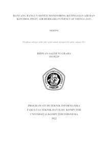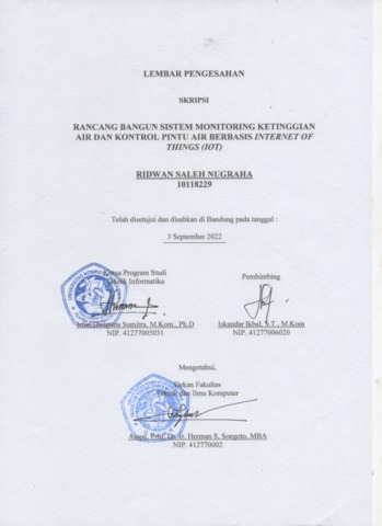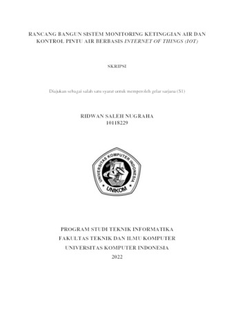 Nugraha, Ridwan Saleh (2022) Rancang Bangun Sistem Monitoring Ketinggian Air Dan Kontrol Pintu Air Berbasis Internet Of Things (Iot). Other thesis, Universitas Komputer Indonesia.
