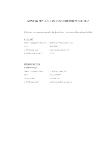 UNIKOM_SATRIA AJI PUTRA KARMA J_LEMBAR KONTAK PENULIS _ KONTRIBUTOR.pdf - Published Version