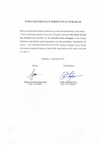 UNIKOM_SATRIA AJI PUTRA KARMA J_SURAT KETERANGAN PERSETUJUAN PUBLIKASI.pdf - Published Version