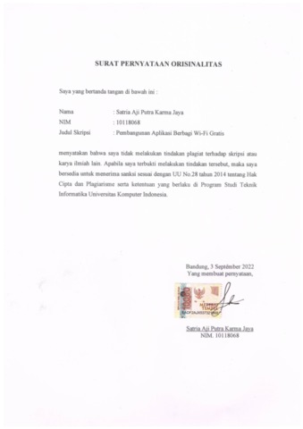 UNIKOM_SATRIA AJI PUTRA KARMA J_SURAT PERNYATAAN ORISINALITAS.pdf - Published Version