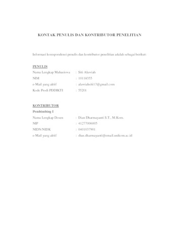 UNIKOM_SITI ALAWIAH_LEMBAR KONTAK PENULIS _ KONTRIBUTOR.pdf - Published Version