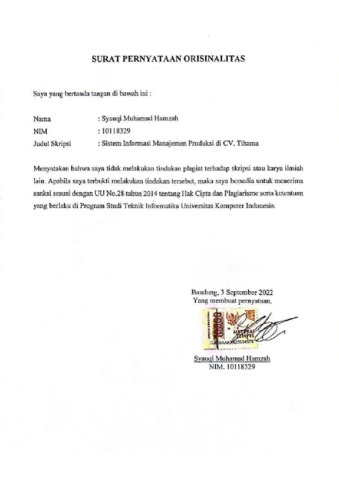 UNIKOM_SYAUQI MUHAMAD HAMZAH_SURAT PERNYATAAN ORISINALITAS.pdf - Published Version