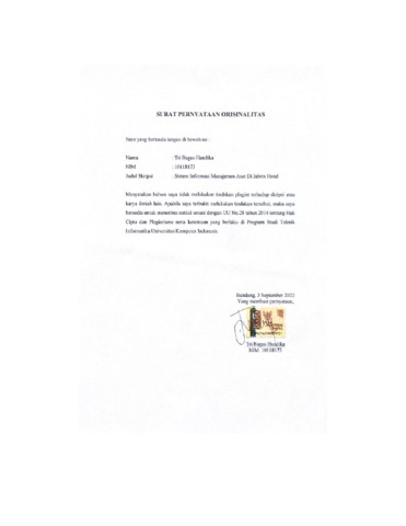 20.UNIKOM_TRI BAGUS HANDIKA_SURAT PERNYATAAN ORISINALITAS.pdf - Published Version