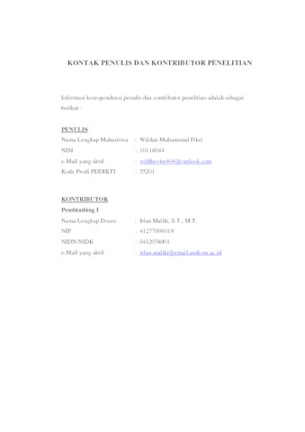 UNIKOM_WILDAN MUHAMMAD FIKRI_LEMBAR KONTAK PENULIS DAN KONTRIBUTOR.pdf - Published Version