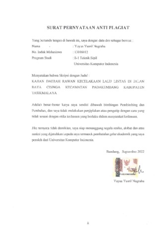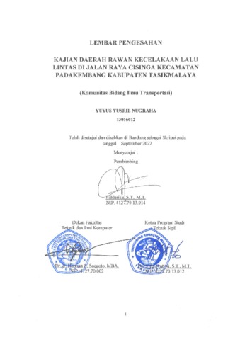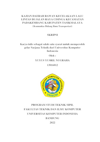 Nugraha, Yuyus Yusril (2022) Kajian Daerah Rawan Celakaan Lalu Lintas Di Jalan Raya Cisinga Kecamatan Padakembang Kabupaten Tasikmalaya. Other thesis, Universitas Komputer Indonesia.
