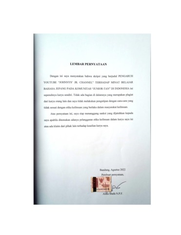 | Uncontrolled Keywords: | Minat belajar, YouTube, bahasa Jepang |