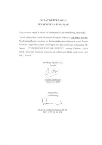 UNIKOM_Anisa Kusumadewi_Surat Keterangan Persetujuan Publikasi.pdf - Published Version