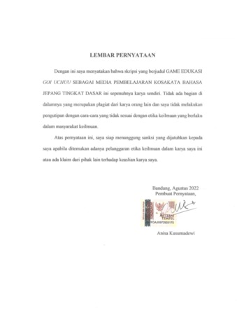 UNIKOM_Anisa Kusumadewi_Lembar Pernyataan.pdf - Published Version