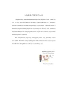 | Uncontrolled Keywords: | Media Pembelajaran, Game Edukasi, Kosakata Bahasa Jepang |